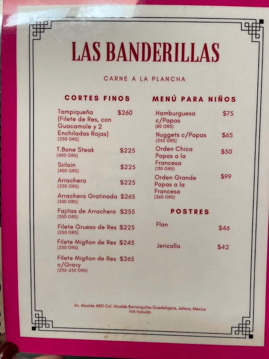 Welcome to Las Banderillas Tradición Y Carnes, a culinary gem nestled in Guadalajara. Known for its fine cuts and rich flavors, the menu promises a delightful experience for steak lovers and food enthusiasts alike. Each dish is crafted with care, showcasing specialties such as the Filete Relleno, which harmonizes pork, cheese, ham, and tomato, served alongside fresh salad, rice, and beans—all for just MX$185.00.